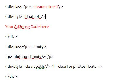 Tick on “Expand Widget Templates” check box.Find “post-header-line-1” and select the correct position in the template.Now paste the adsense codes as following.